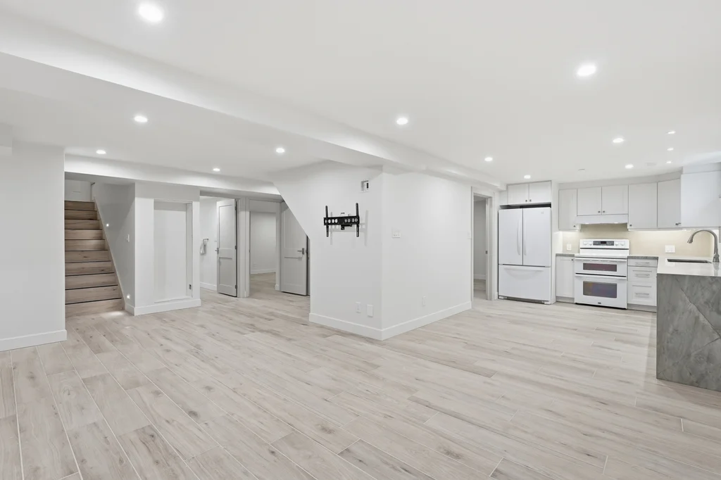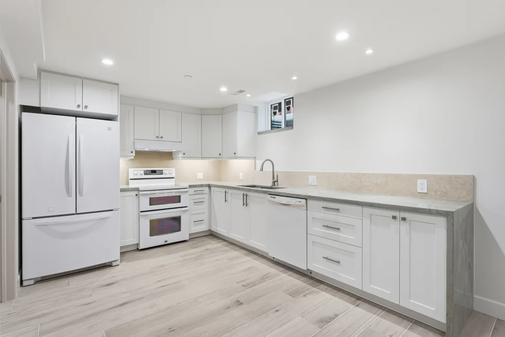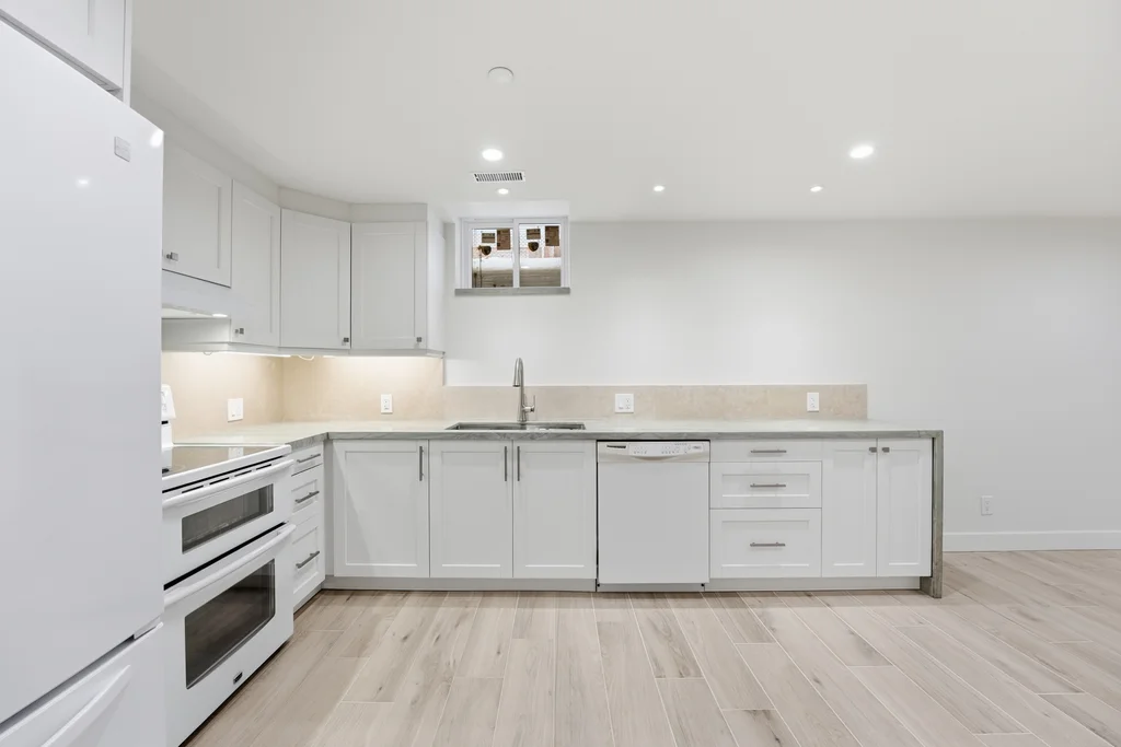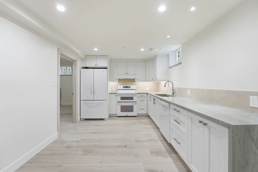 Fantastic rental opportunity in central Aurora! Be the first to live in this upscale, newly-renovated, basement suite that has it's own entrance and is sound-proofed between levels to maximize privacy. This well-appointed rental offers two large bedrooms and a functional layout designed for comfortable living. The main 3-piece bathroom includes convenient in-suite laundry, complemented by an additional powder room for guests. The spacious kitchen features a dishwasher, sleek quartzite waterfall countertop, and an undermount sink, creating a modern and practical cooking space. Just outside the entryway door, a gas line is available for connecting a BBQ that will be provided by closing - perfect for easy outdoor grilling. The basement has an independent hardwired gigabit ethernet system available to be connected to the tenant's provider. Ideally located just minutes from Yonge Street, the Nokiidaa Trail, and Centra grocery store, this home offers convenient access to shopping, dining, and scenic outdoor spaces.